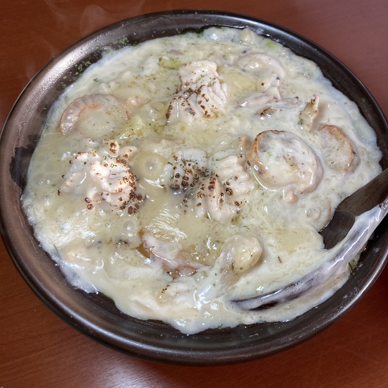 真鱈白子・県産ほたて・鱈・長芋等が入ったクリーミーで濃厚なホワイトソース!