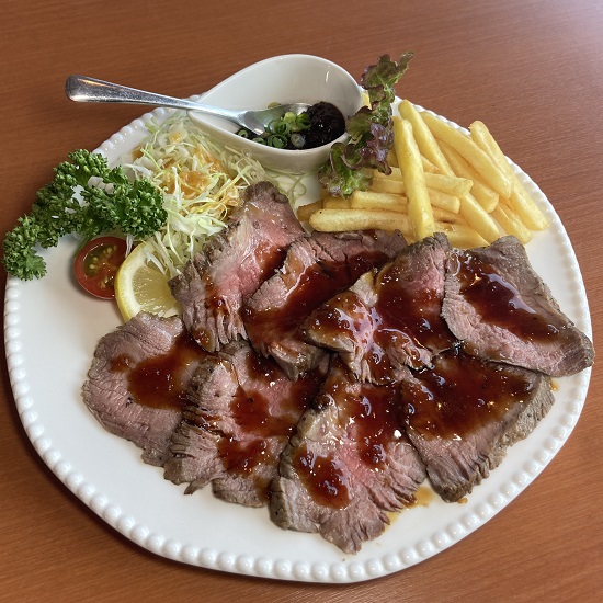 低温ローストでじっくりと焼いた旨みたっぷりのお肉に特製黒にんにくソースで味変もお楽しみください。